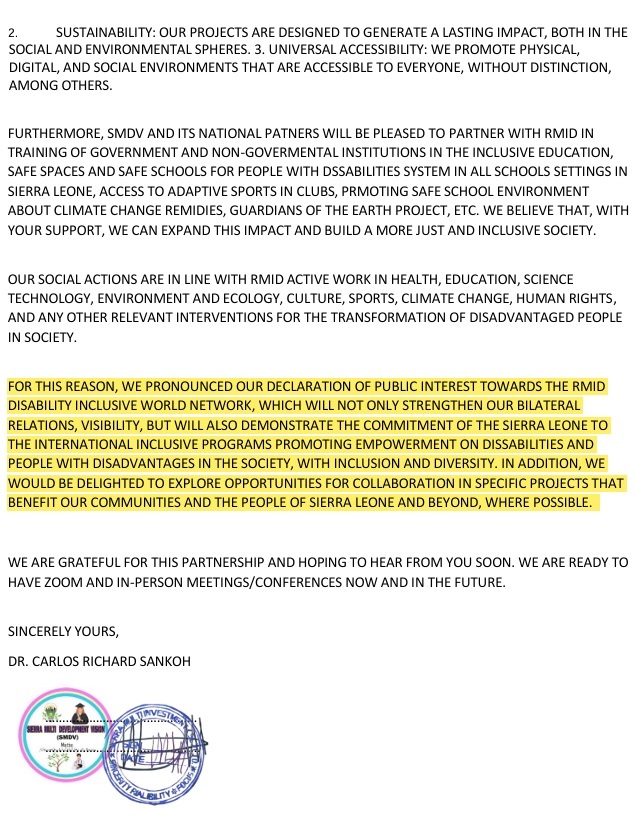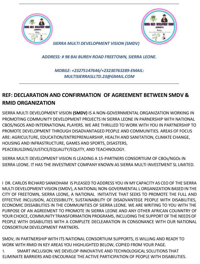 ORGANIZACION SMDV - SIERRA LEONA AFRICA - DECLARA INTERES PUBLICO A RMID
